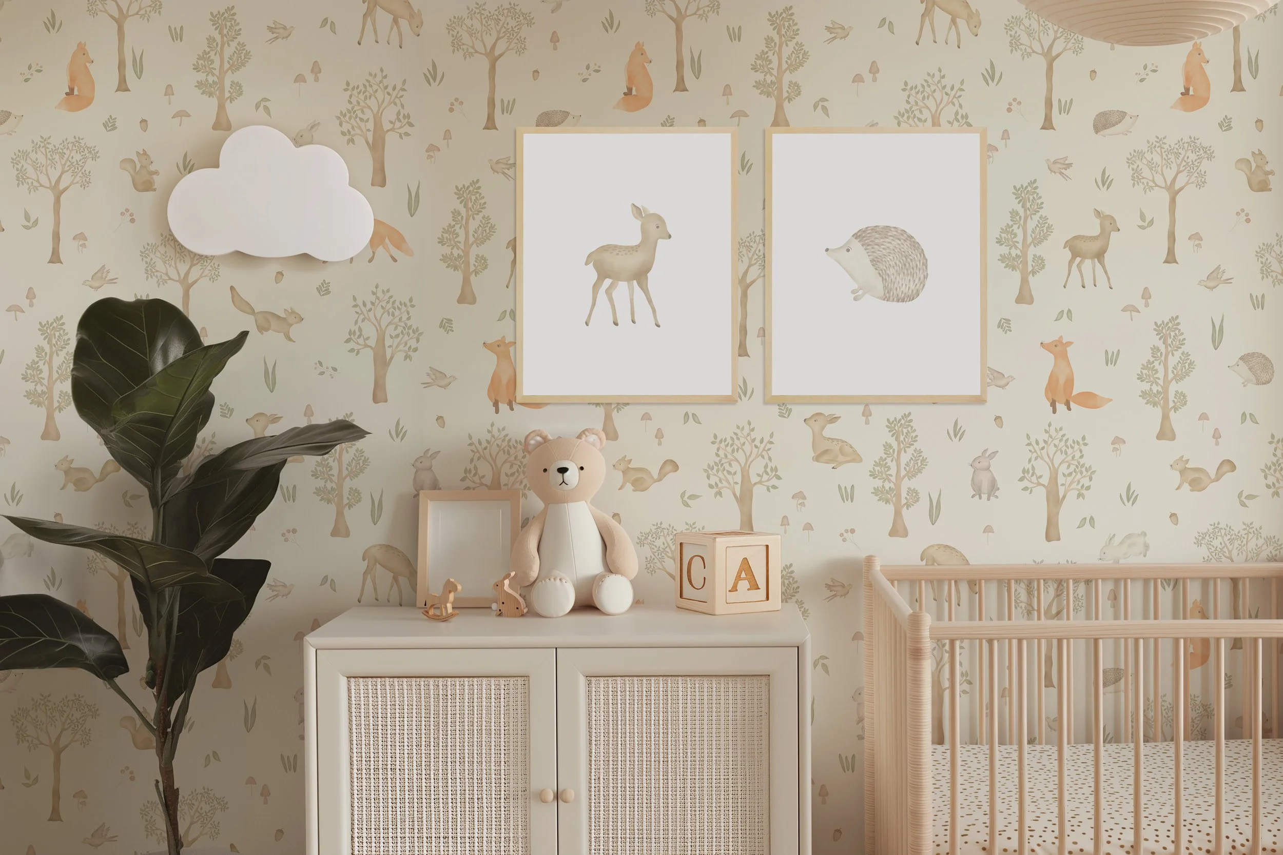 Easy Woodland Nursery Decor Ideas with Printable Wall Art & Matching Wallpaper Designs