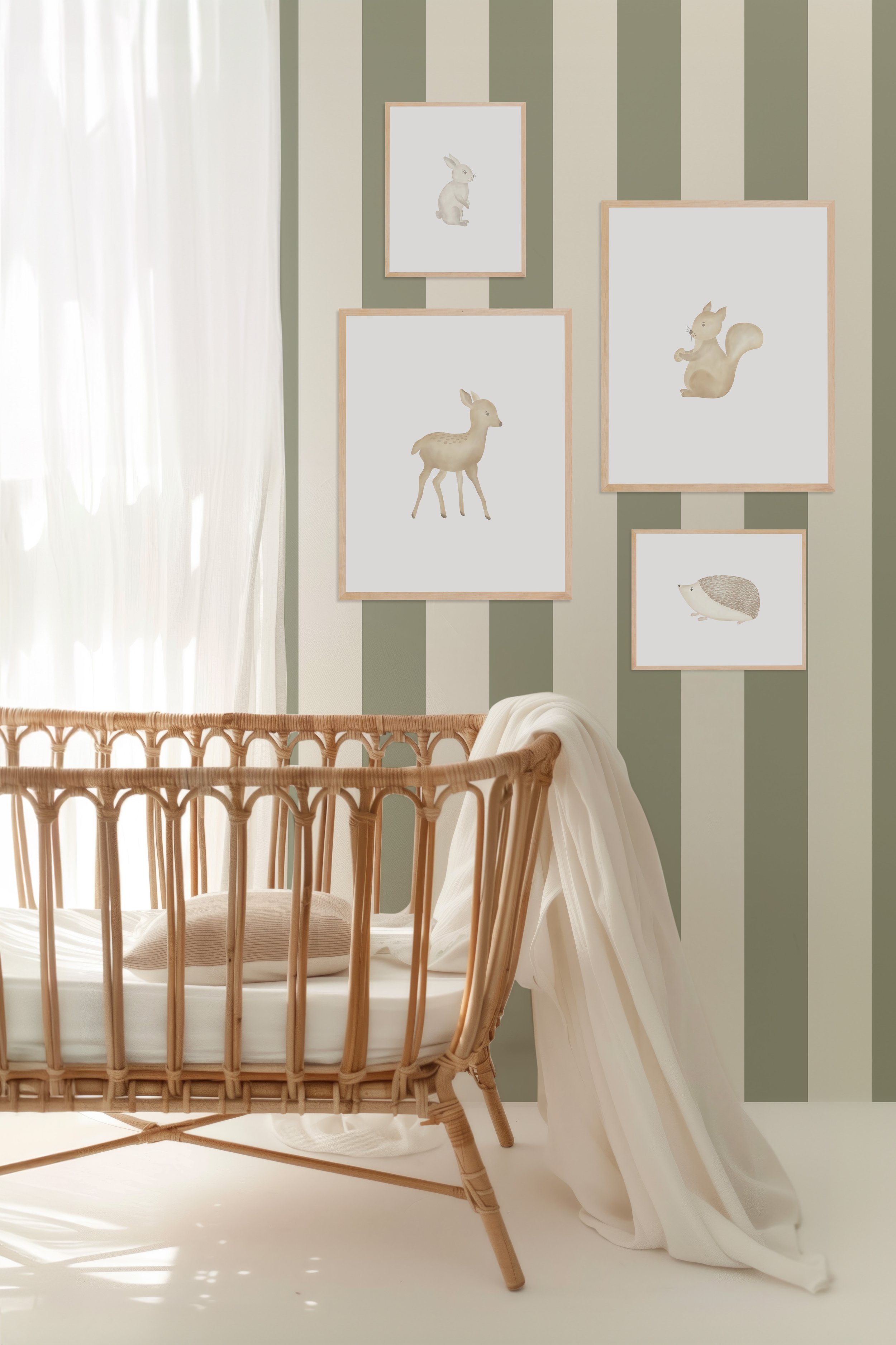 Classic stripes give structure and timeless charm while keeping things soft and sweet. Ideal for traditional or vintage woodlands.