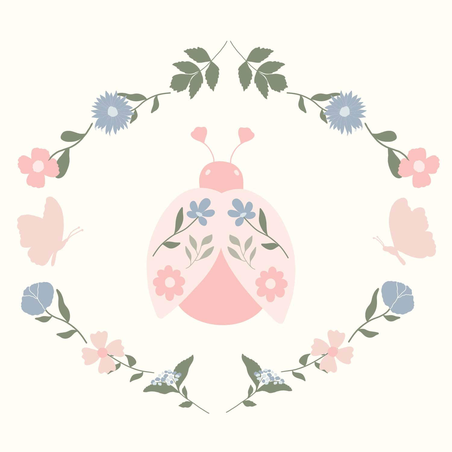 I created the Sweet Bloom collection as a celebration of all the gentle, joyful details that make spring so enchanting. I was inspired by the delicate charm of wildflowers, the playful flutter of butterflies, and the tiny surprise of spotting a ladybug among the petals. This collection is full of soft, feminine touches—curved lines, dainty blooms, and sweet pastel colors that bring a sense of warmth and innocence. I wanted every design to feel like a little moment in a spring garden, where nature feels soft, friendly, and full of life.